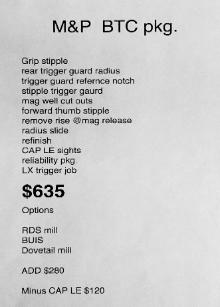 Milling for various red dots on the M&P is $175 for bossed RDS mill, $50